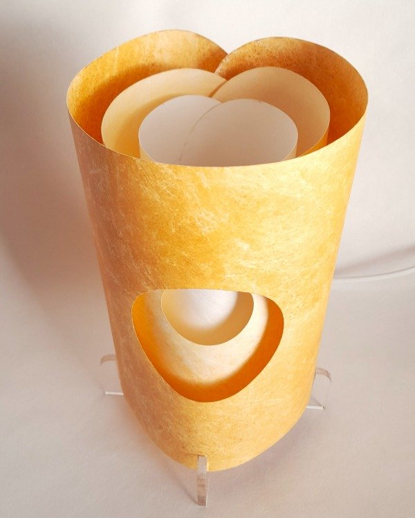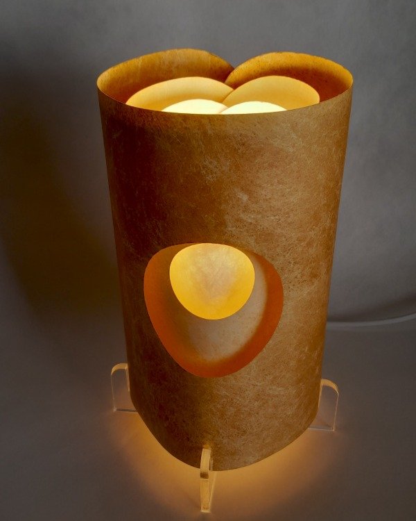 Para diseñar estas luminarias desarrollamos un sistema de capas con cortes circulares que dan una sensación de profundidad y a su vez ofrecen efectos de superposición que generan distintos matices para crear ambientaciones cálidas y suaves. Trabajamos con círculos, óvalos y curvas que dialogan con formas naturales y orgánicas, otorgándole a esta luminaria además de su función utilitaria, un componente contemplativo y lúdico.