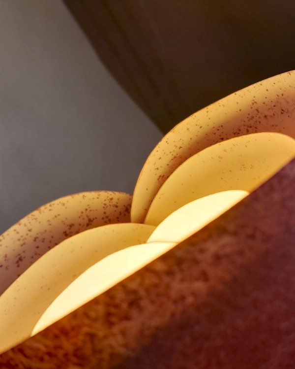 Para diseñar estas luminarias desarrollamos un sistema de capas con cortes circulares que dan una sensación de profundidad y a su vez ofrecen efectos de superposición que generan distintos matices para crear ambientaciones cálidas y suaves. Trabajamos con círculos, óvalos y curvas que dialogan con formas naturales y orgánicas, otorgándole a esta luminaria además de su función utilitaria, un componente contemplativo y lúdico.